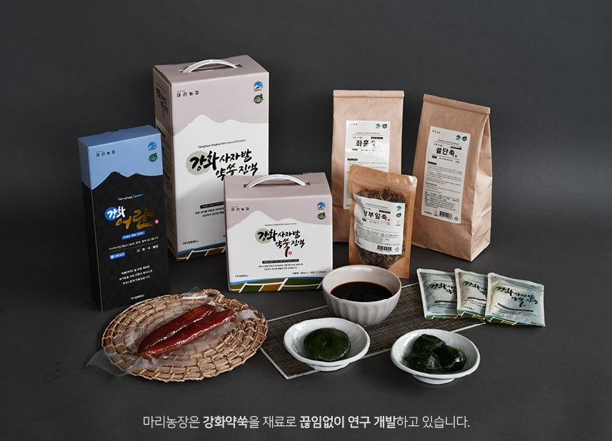 Ganghwa Mani Farm, a traditional wormwood company in Ganghwado Island, is a farm company called "Marie Farm" This company is located at the foot of Manisan Mountain, where the spirit of the nation resides. It manufactures and sells healthy food using reinforced wormwood by combining the deep energy of Manisan Mountain with the soil of Ganghwado Island where the three rivers are combined. It carefully grows the lion's-foot wormwood, the main ingredient of the product produced by "Marie Farm," and it's on, not in a regular vinyl house but are stored in wormwood-purposed cellars in which temperature and humidity are controlled for three years. Use only raw materials that have been aged for 3 years in a warehouse dedicated to humidity control. Based on the experience of succeeding generations through three generations, and the new knowledge of my father, a former chairman of the research group, and my son, who served as the youngest farming manager, Kanghwa Island, we are constantly developing quality products that incorporate traditional and modern methods so that you can drink and use more healthily. The company is continuously researching through the experience that passes three generations, along with the power of the father, who is the head of the “Ganghwa-do wormwood Research Association” and the son, who is the youngest “wormwood manager”and possesses new expert knowledge. Thus, the company is continuously merging traditional methods along with contemporary methods to create high-quality products that are healthier to use for our customers.